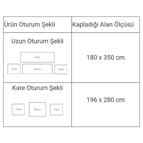 - Köşe takımı veya tekli/ikili koltuklardan oluşması.